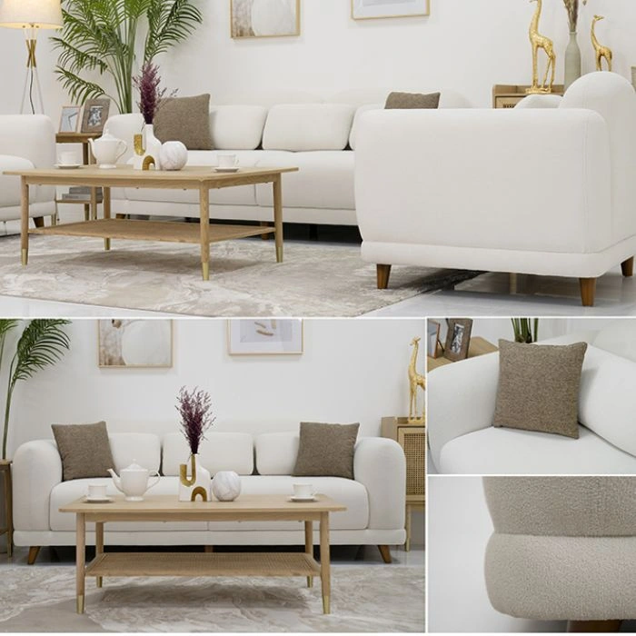 The Atom Sofa Set has been designed using a sturdy wooden frame that will allow you to use the product regularly while maintaining the level of comfort it provided during your initial purchase. The colour of this product is neutral and will complement most home styles, whether modern or simple.