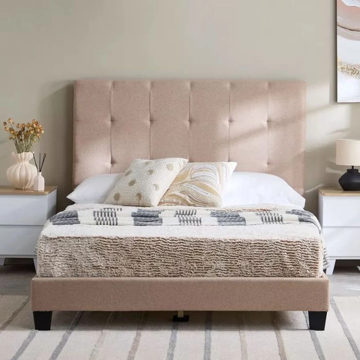 The Kulltorp Smart Upholstered Queen Bed is a high-quality bed that offers both comfort and style. Its soft and cozy upholstered design gives your bedroom a special look. Whether you live in Dubai, Abu Dhabi, Sharjah, Ras Al Khaimah or Ajman, this bed brings beauty and order to every home interior.