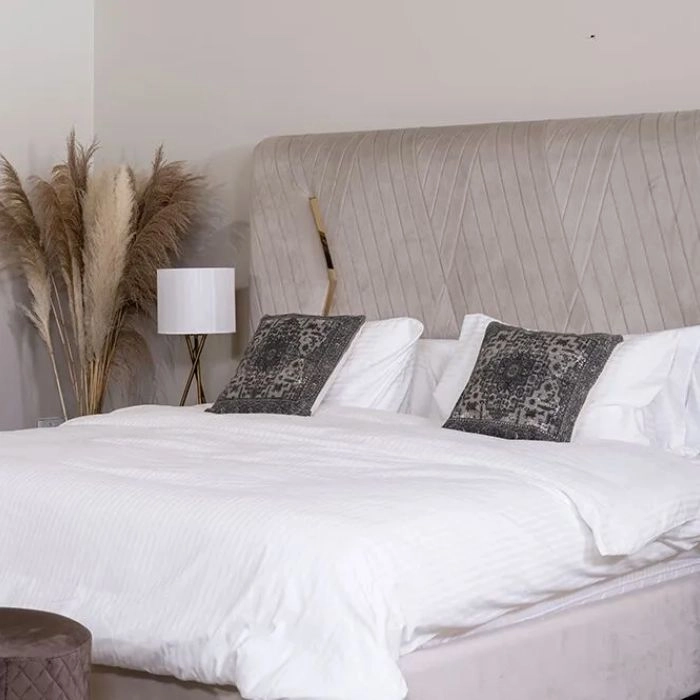 The Nataly Bed is a beautiful and comfortable bed that brings peace and simplicity to your bedroom. Its design is simple and clean, making the room more open and organized. Its soft and comfortable upholstery provides complete comfort to the body when lying down, and a feeling of calmness during sleep.
