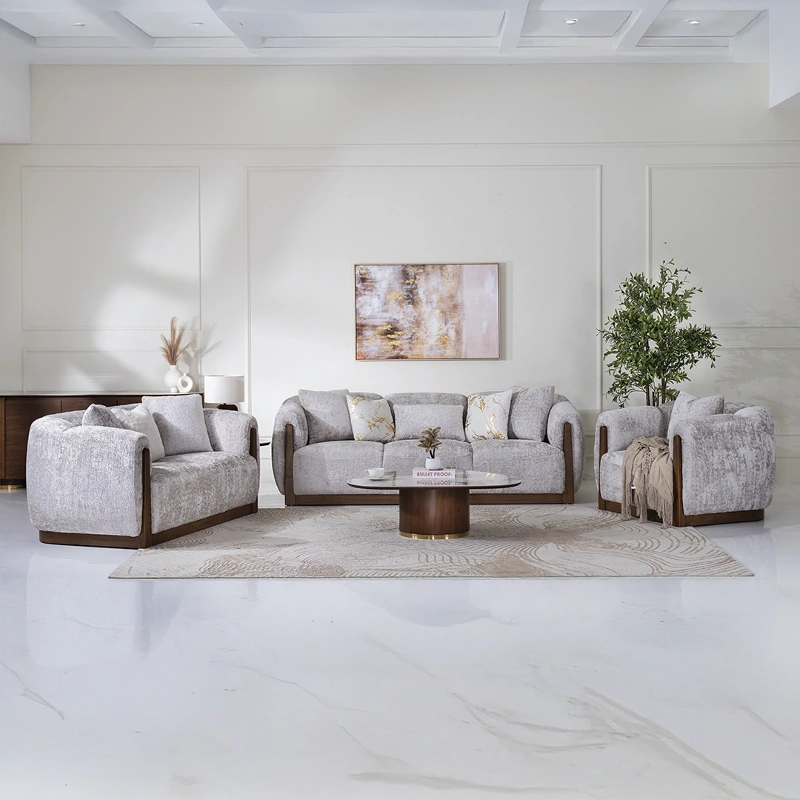 Its frame is strong and durable, so it will last for a long time even in daily use. The soft and rich cushions make sitting very comfortable, whether you are watching TV, chatting, or relaxing. The color and style of the Ramsey Sofa Set complement all kinds of home interior designs.