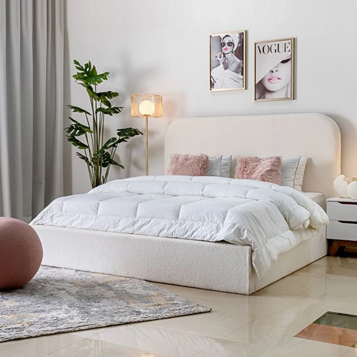 The bed features a soft upholstered covering, making it very comfortable to sit or lie down on, providing an instant feeling of relaxation. Additionally, it has a solid and strong frame, making it durable enough for continuous daily use.