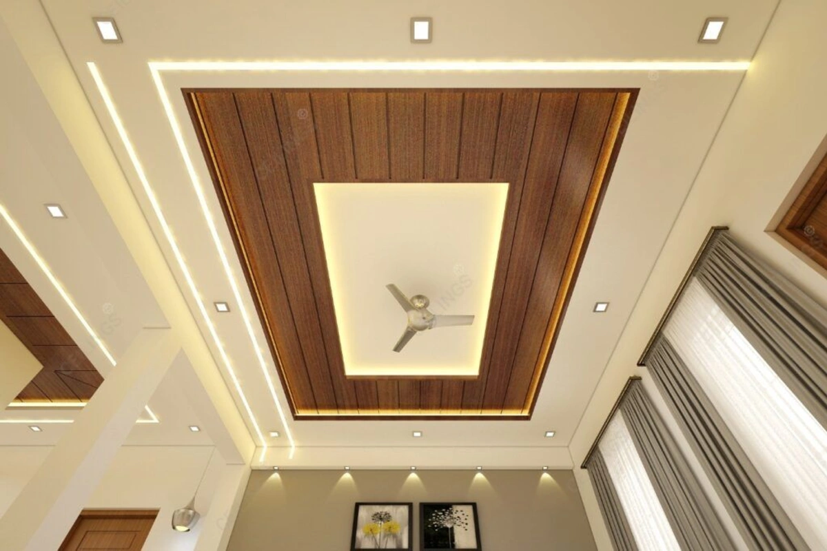 Create a warm environment with a wood false ceiling.